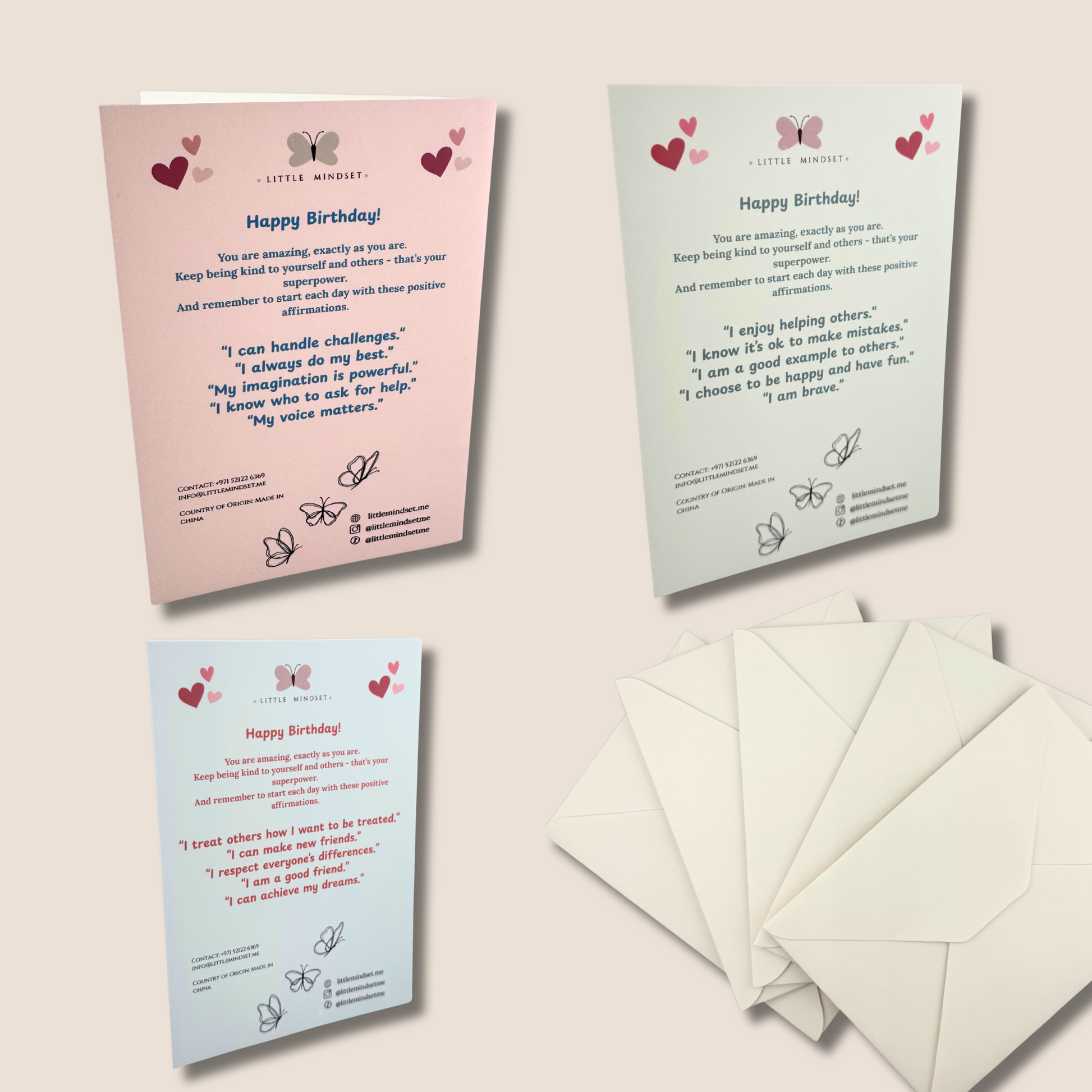 Little Mindset Mindful Birthday Cards make every birthday extra special. Each card is beautifully designed on the front and carries a positive affirmation on the back, adding a thoughtful touch to every celebration.